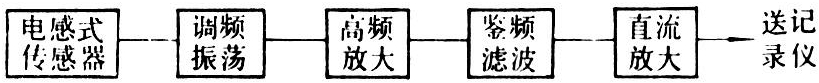 有惯性式(接触式)与非接触式两种型式。惯性式扭振仪具有与机械式扭振仪相似的拾振器,并可将其扭振产生的相对角位移机械量转为电阻、电容或电感量。最常用的为电感调频式扭振仪,工作原理如图2所示。传感器将轴系的扭振信号转换成相应的电感变化,通过电感电容回路组成振荡部分,把电感的变化转换成频率的变化,然后通过高频放大推动鉴频器工作,把频率的变化转换成电压变化,最后经直流放大输出相应的扭振波形电信号供记录分析。