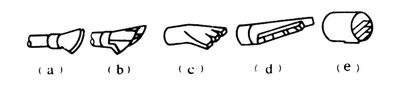 施粒机上利用风机产生的气流喷撒粒剂并将它们导向目标物的装置。有喷粒头、喷粒管及长塑料薄膜喷粒管等型式。喷粒头有多种形状,如图1。当用于气流式施粒机或改装喷雾喷粉机用于喷粒时,将其装在风机直喷管的末端,喷幅可达10米。这种装置结构简单,使用方便。缺点是喷撒均匀性较差。 图1 喷粒头 喷粒管也有多种形状,如图2。使用时装在风机出风口的弯管上