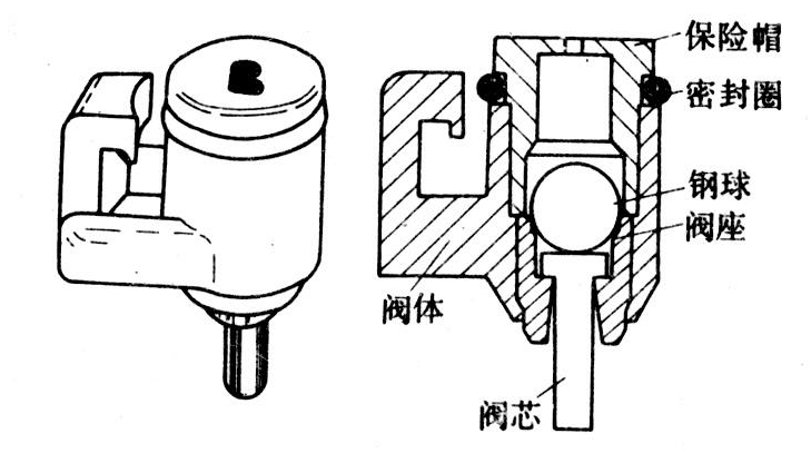 主要由阀座、阀体和阀芯、钢球等组成(图3)。直接固定在输水管的下方。由于水压和阀芯、钢球重量的作用,使阀芯常处于最低位置,即阀座出水口呈关闭状态。当家禽触动阀芯时,阀门开启,水沿阀芯缓缓流出,以供家禽饮用。当家禽停止啄饮时,钢球、阀芯重量和水压又将出水口关闭。通常要求水压控制在2~12千帕范围。该饮水器主要用于笼养,优点是节约用水,利于防疫,不需清洗。但对水质、水压和安装精度要求较高,为此还需配置过滤器和减压阀。