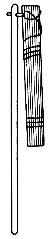 人类很早就发明的一种打击谷穗而使之脱粒的工具。王祯《农书》卷十二,有连枷图(图4),《古今图书集成》农部汇考加以引用,图说择要为:“连枷,击禾器。……其制用木条四茎,以生革编之。长可三尺,阔可四寸。又有以独梃为之者。皆于长木柄头造为擐轴,举而转之,以扑禾也”。