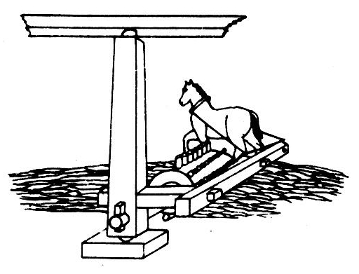 古代埃及人利用木制或石制的拖板做成滑橇用来脱粒的一种工具。橇底做成粗糙表面,用牛拉动,人坐其上赶牛,或压以重物,在铺好的谷层上,一圈圈地行走,靠橇底与谷层的摩擦来使谷粒脱落。这种工具至今在部分地区仍有使用。