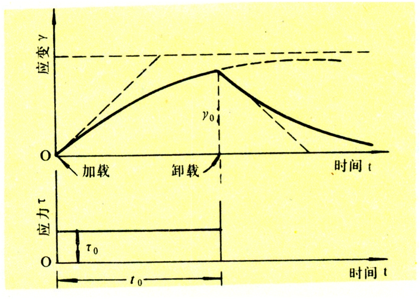 在水田或沼泽土的情况下,往往呈现作用力定常而变形随时间而增大(蠕变)或变形保持定常而应力随时间而消减(松弛)这样的流变特性。当时间效应对所讨论的问题的受力与变形流动具有显著意义时,常将土壤作为含有应力与应变速率或应力、应变与时间之间关系的粘弹塑性体或某种流变体处理。图3为土壤蠕变过程一例。