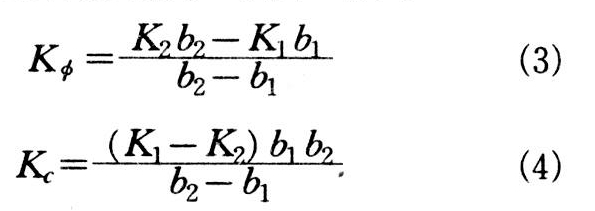 式中 b1及b2分别为两次所用测盘半径或宽度。Kc、Kφ和n值可计算而得,也可用绘图法求得。