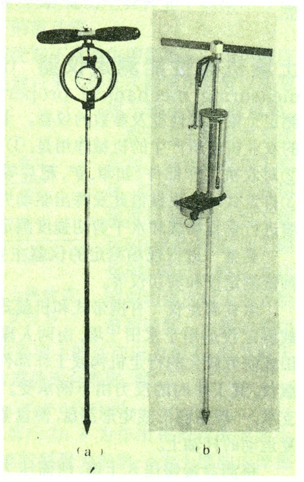 图2(a)是最简单的圆锥仪,由刻度杆轴、圆锥测头、压力指示器和手柄构成。仪器的压入深度和压力值可直接读取。图2(b)所示圆锥仪可自动记录压入深度和压力。圆锥测头在美、苏、日本等国均已列入国家标准。中国制订的农机用测头标准(NJ168—78)规定了测头锥角为30°,锥底面积3平方厘米。