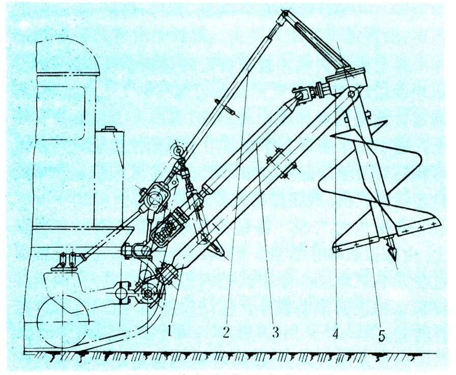 通常悬挂在10~50千瓦拖拉机的后方或侧后方。悬挂方式有刚性连接、单臂铰接、平行四连杆连接和不平行四连杆连接等四种形式。刚性连接结构简单,但升降时钻头摆角大,只能挖浅穴。单臂铰接没有上拉杆,钻头与机架铰接靠自重下垂,作业时常需人工定位,稳定性不好。平行四连杆连接上拉杆与机架平行,能使钻头在挖穴过程中保持垂直状态,但有钻头的横向位移引起侧压力,工作不够稳定。采用不平行四连杆形式的较普遍。