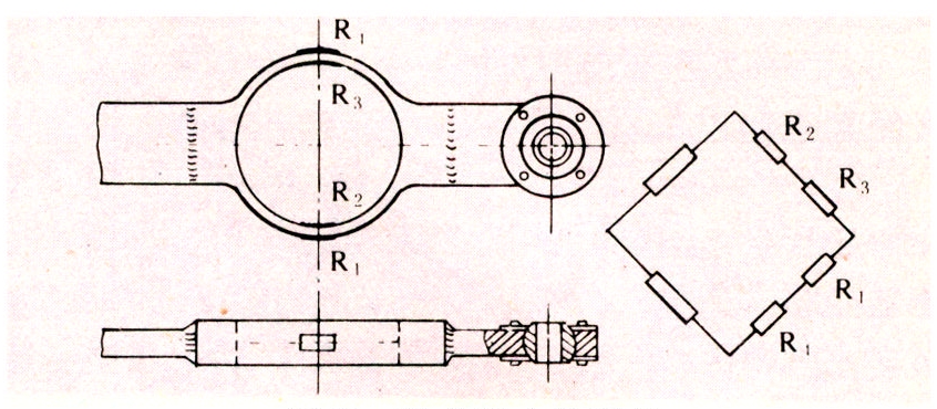 测力传感器配置在拖拉机悬挂装置的上、下拉杆和提升杆上,可测出机组工作时各杆件所受的轴向力,按悬挂杆的几何位置和所测得的力的大小,计算出农具的工作阻力。