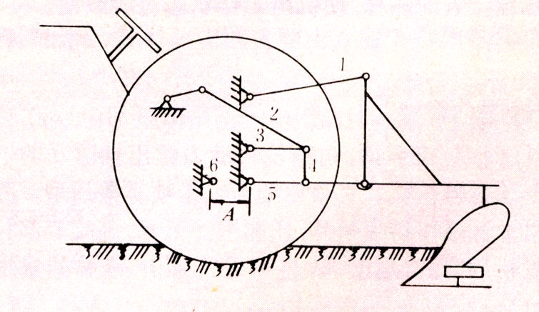 代替拖拉机悬挂装置上三个连接销的悬挂测力销的结构如图3。当测力销电阻应变片的中心线位于通过测力销中心的水平面内时,可以测出测力销所受的纵向水平力。农机具工作阻力的纵向水平分力等于三个销所受的纵向水平力的代数和。为了消除拖拉机提升杆所产生的水平分力对下悬挂销测力的影响,须加设由副拉杆和短杆组成的辅助机构(图4)以保证提升杆始终与地面垂直,不产生水平分力。若改装后拖拉机下拉杆连接点后移A距离,下拉杆也必须相应缩短同样的距离,以保持机组原有的工作状态。