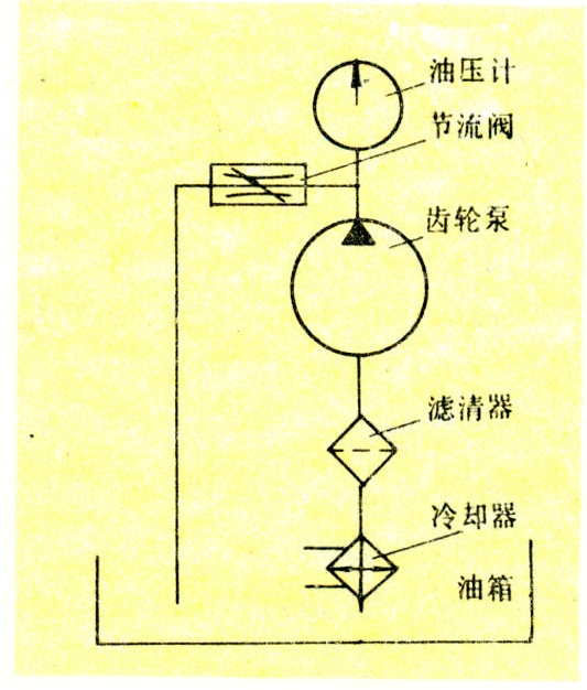 由内装冷却水管的油箱、齿轮泵、节流阀、油压计组成(图3)。拖拉机动力输出轴与测功器输入轴连接,并驱动齿轮泵,将油箱中油泵出,经节流阀流回油箱。调节节流阀开度就可使泵的输出压力变动,实现对拖拉机的发动机加载。从装在节流阀前高压油路上的油压计读出油压值。将油压值乘以相应的标定值即可得出扭矩值。转速测定与前述类同。