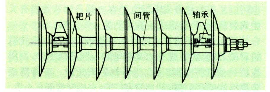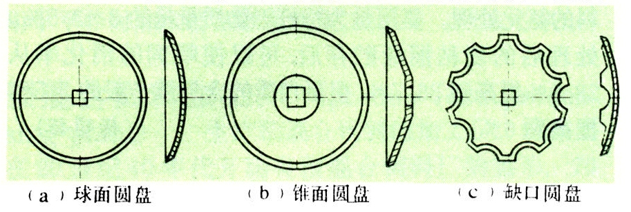 是凹面圆盘(图1)定距离串装在轴上的耙组(图2)。圆盘的凹面一般为球面,某些国家也采用锥面。圆盘有全缘刃和缺口刃两种,前者制造简单、磨刃方便;后者入土能力强,有利于切碎土块和残茬杂草,多用在进行粘重土壤耕作的重型耙上。各国的耙片尺寸均已标准化,并有国际标准。耙片的材料一般采用耐磨的65Mn钢,也可采用低碳马氏体B5钢。美国从40年代开始,用交叉辊轧的钢板制造耙片。圆盘耙片的中心孔一般为方孔,由间管隔开,耙片与间管一起套在方轴上用螺帽锁紧即成为耙组。工作时,圆盘刃口平面垂直于地面,并与前进方向成一偏角。各个耙组均由机架上的轴承支承。作业时,在拖拉机牵引力和土壤反作用力作用下,耙组的各个耙片随同方轴整组滚动。在耙自身重力作用下耙片刃口切入土壤,切断草根或作物残茬,切碎耕翻后的垡条,并使土垡沿耙片凹面略微上升,然后翻落,具有一定的翻土和覆盖作用。耙组的偏角可以调节,调节范围一般为0°~30°,常用偏角为10°~25°。增大偏角可增加耙片的入土深度和翻土、碎土效果,阻力也随之增加。