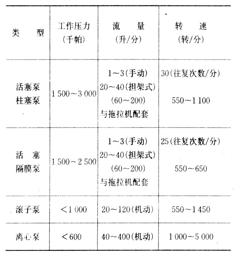 植保机械常用液泵的技术参数