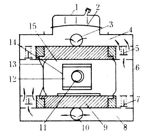 活塞泵的阀门分为平阀、锥阀和球阀三种。球阀中圆球的支承面较窄,易与阀门座紧密配合,工作可靠,在手动往复泵上采用较多;机动往复泵转速较高,常采用弹簧顶压平阀门。活塞泵的气室是为了稳定工作压力和减少管路系统的振动,常装在出水室附近,常用空气室有空腔式和隔膜式。空腔式是一个具有一定空间的耐压容器,在压力药液进入后,可使其存贮在上部的空气受到压缩,具有稳压作用。隔膜式则是在空气室的中部装有弹性隔膜,将空气室分成上、下两部分,上半部注入规定压力的压缩空气,起到稳压作用,并可相应缩小空气室的容积。这种结构,由于空气与药液隔离,不会发生空气逐渐溶入药液的现象,可保持空气量的稳定。随着转速的不断提高,液泵每一行程排液量相对减小。此类泵有取消空气室的趋向。压力指示器是用来指示液泵排出药液压力的大小,是一种常规压力表的代用装置,在工作中不易失效,但存在指示压力不够精确的缺点。