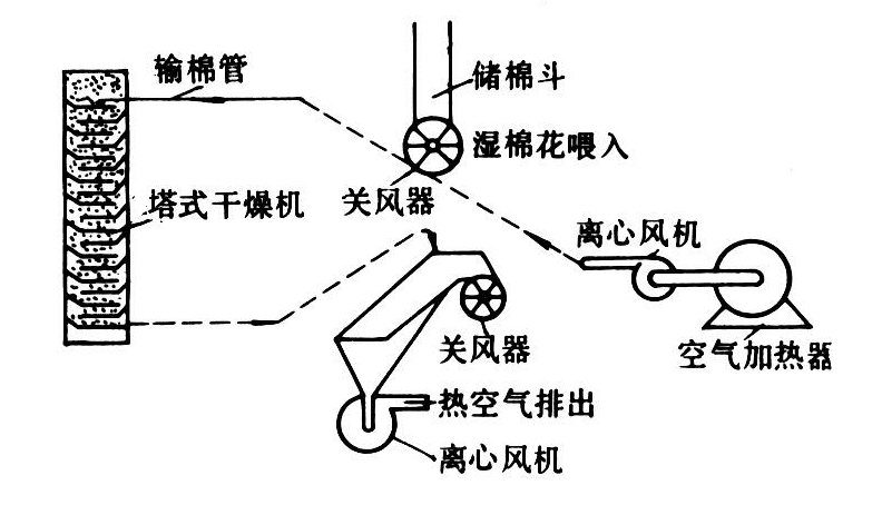 将籽棉水分降低至需要程度的成套设备。棉纤维含水的多少对轧花过程影响很大,控制合适的水分,可防止轧花过程棉纤维断裂,并保持良好的外观形态。棉花纤维含水率在6.5~8%时,轧花机运转良好,既可提高轧出皮棉的品级,又可控制纤维断裂率在允许的范围内。