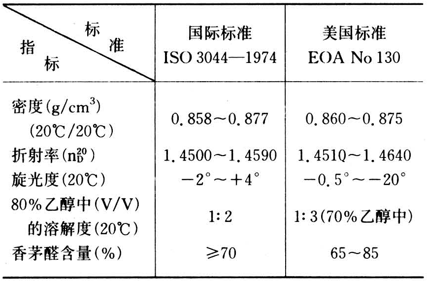 香料型柠檬桉叶油质量标准表