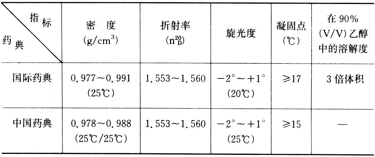 国际和中国药典对八角油质量的要求如表。