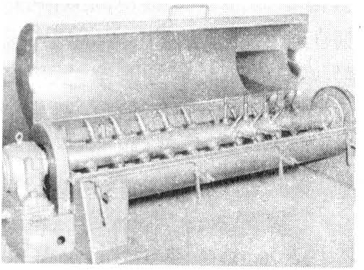 对于不同形态的刨花,如普通型刨花、细刨花、大片刨花、华夫刨花等拌胶,所用设备各有要求。例如,为了防止大尺寸刨花在拌胶操作中被搅碎而采用的鼓式拌胶机,以及能够使刨花流中粗细刨花吸收б较合理的胶量所采用的风式拌胶机等。图1所示的是现代普通型刨花拌胶最流行的一种拌胶机。它以高速旋转的搅拌桨使刨花与胶液摩擦而使胶料转移及胶层厚度趋于均匀。胶液有从侧面喷入、轴中向外喷出和从壳内用管子直接加入等几种方式。由于桨叶高速旋转,需要用冷却水冷却轴及桨叶,避免刨花在拌胶中温度升高而致胶料提前固化。刨花在机内滞留时间只有几秒钟,虽然经过高速搅动并相互摩擦但因碎裂而使刨花规格变小的程度不大。
