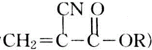 由a-氰基丙烯酸酯单体(结构为、增稠剂(常用聚丙烯酸酯等)、增塑剂和稳定剂组成。单体经引发聚合而固化,增稠剂是弹性体,不参与化学反应,是第一代丙烯酸胶粘剂的代表。这种胶粘剂瞬间胶合,粘度低,透明性好,对多种材料有良好的胶接强度。缺点是耐水性和耐极性溶剂差,胶层较脆,不宜大面积使用。高粘度的胶液可直接用于木材胶接。