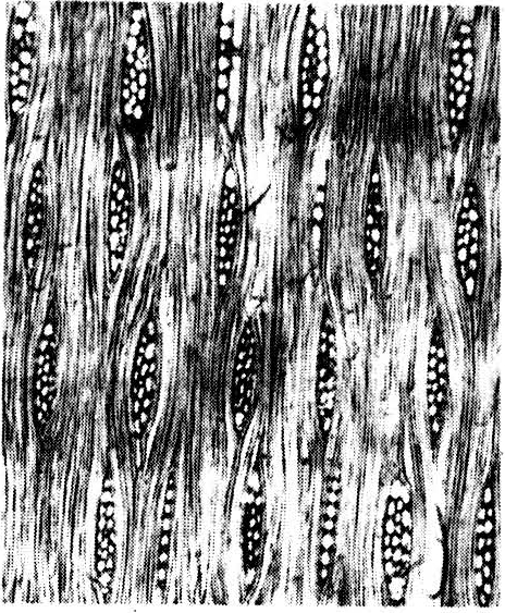 描述一些木材中的轴向分子及射线在弦切面上排成水平状系列,并成层状的构造。叠生出现于各种组织中,例如“叠生薄壁组织”、“叠生射线”(见图)等等。肉眼或放大镜(10倍)下,在木材的弦切面上看到有许多细的、水平的条纹,常称之为波痕或波状纹,此种波痕的出现,就是由于叠生构造引起的。在心材中б在边材中更容易看出。 黄檀的叠生构造 叠生构造系发生于叠生形成层。