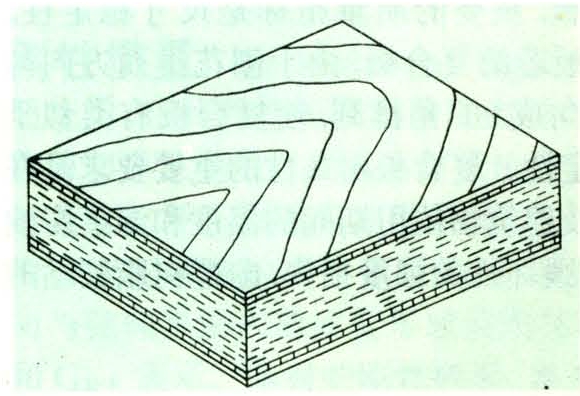 以刨花或纤维材料为板芯,两面胶贴单板的一种人造板。通常所说的复合板主要指用定向刨花板作板芯,单板作表层的结构用人造板(图1)。复合板不仅可提高木材综合利用率和扩大人造板使用范围,还可充分利用低等级木材和采伐、加工剩余物,满足社会各种需求及缓和木材供应短缺的矛盾。20世纪70年代初,美国开始对该产品作系统的研究和开发利用。