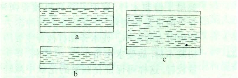 复合板的一个主要功能是替代胶合板,它的厚度随用途不同而变化。作为结构板,最普通的厚度是12.7毫米,包括每面一张厚度为2.54毫米的单板,这样的复合板由60%的刨花板和40%的单板组成。厚度为9.5毫米的薄型复合板,单板和刨花板大约各占一半。厚度为19毫米的厚复合板,单板约占1/3,刨花板约占2/3(图2)。