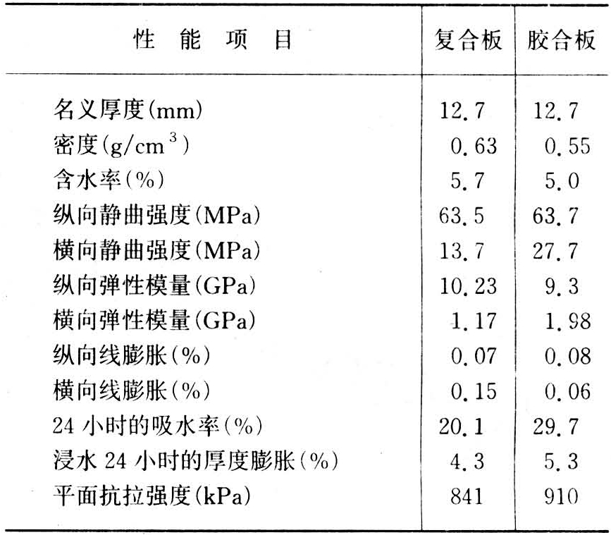 复合板和胶合板物理力学性能比较表
