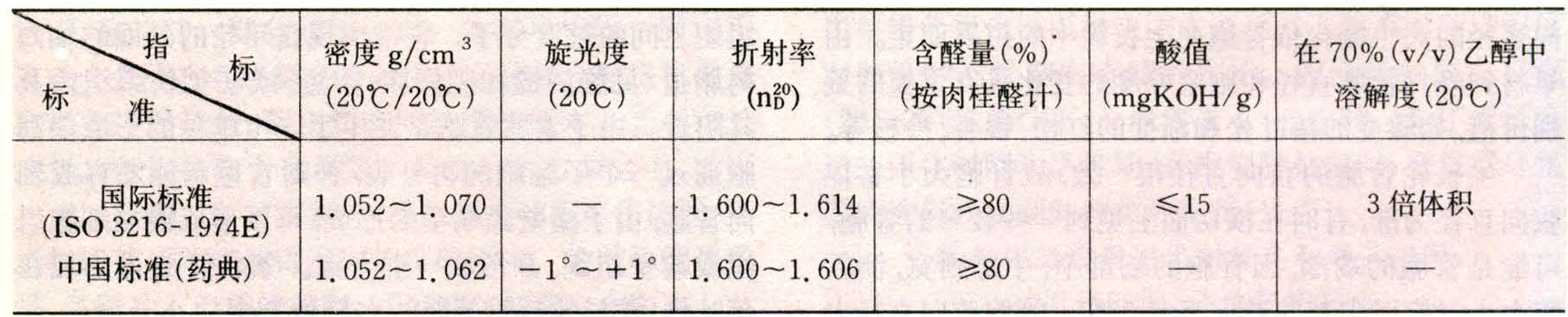 桂皮油的国际和中国质量标准表