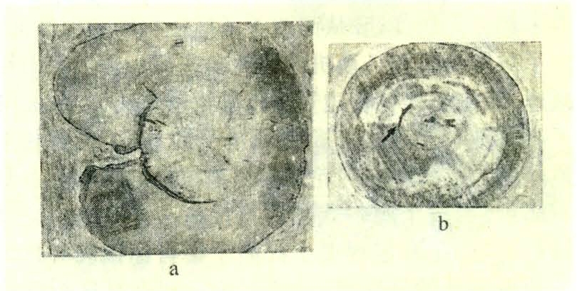 木材中存在着部分树皮的一种缺陷。夹皮是由于树木的茎干部分受到伤害,例如鸟啄(啄木鸟)、虫蛀(小蠹虫)、兽害造成的损伤,使形成层局部面积的分生组织死亡,但其周围的形成层组织仍具有继续分生的能力,并在内树皮中形成一新的形成层,随着树木的生长,将一部分树皮包入木质部中。夹皮按包入木质部的情况,可区分为外夹皮和内夹皮两种。外夹皮显露于树干外部(图a),在树干侧面常呈沟状。内夹皮隐藏在树干内部(图b),只有当原木截断或锯剖开后,才可能看到。在原木的横截面上,内夹皮常为含有树皮的弧形裂隙。在木材径面表现为黑色的条纹弦面则呈圆形。有些夹皮中还可能有一些树脂或树胶。有的夹皮本身已腐朽,甚至蔓延到邻近的木质部。