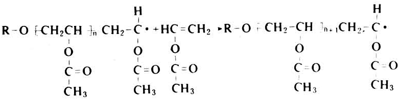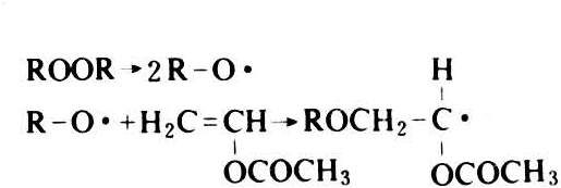 当引发剂的游离基或离子本身连接到醋酸乙烯酯单体上时,就产生了引发作用,导致双键电子重排,将活性点转移到醋酸乙烯酯单体上。引发