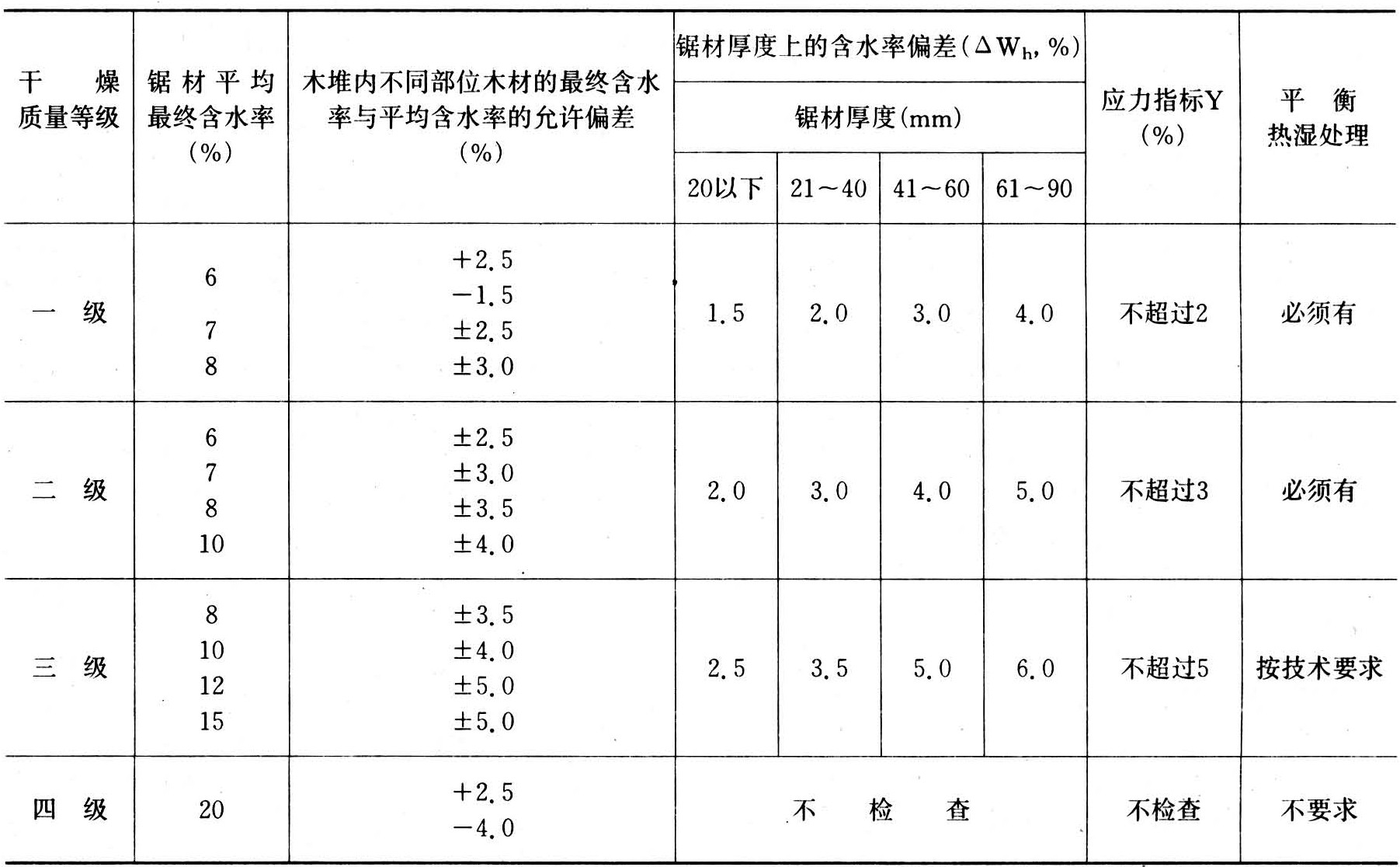 式中 i=1,2,3,……,n。锯材平均终含水率应符合表1中第二栏的规定。