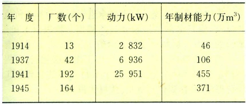 表1 中国东北地区1914~1945年制材厂基本情况