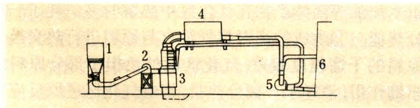 气热干燥是一种热效率高、干燥成本低、设备投资少的干燥方法,适于中、小型木材加工企业采用。但老式的烟熏窑和火道窑因干燥不均匀、周期长,且易发生火灾,而逐渐被淘汰。南京林业大学研究推广利用木材加工剩余物在炉中旋风燃烧,生成的炉气体经过除尘、增湿后,作为干燥介质送入窑内加热并干燥木材(见图),由于窑内介质的温湿度可以调节,干燥质量较好。
