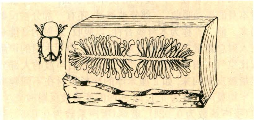 主要由鞘翅目的棘胫小蠹科、长小蠹科、象虫科、天牛科、吉丁虫科、筒蠹科,膜翅目的树蜂科等的害虫蛀蚀所形成。根据蛀蚀程度,可分为表面虫眼或虫沟、小虫眼和大虫眼等。①表面虫眼或虫沟:主要指木材遭蛀蚀的深度不足10毫米的虫眼和虫沟(按中国国家木材缺陷和检验标准规定)(图3)。多由某些小蠹虫及某些天牛等的侵害所形成。主要蚀害新伐倒木树皮下的韧皮层而伤及边材表层,咬穿坑道,形成表面虫眼和虫沟。②小虫眼:主要指虫孔最小直径不足3毫米的虫眼,多由棘胫小蠹科、长小蠹科与筒蠹科等科的某些小蠹虫所造成。它在树皮下蛀蚀的虫眼、虫沟常扩展或延伸至边材部位。虫孔深度3~5厘米,甚或10多厘米不等。虫道在木材内呈水平或垂直树枝状分叉。③大虫眼:虫眼圆形或扁圆形,最小直径在3毫米以上,深度在10毫米以上(按中国国家木材缺陷和检验标准规定),主要由天牛、松树皮象和树蜂等害虫所形成(图4)。虫道常有丝状或粒状蛀屑充塞或排出。例如:光胸幽天牛(中国东北林区称小蛤虫眼),主要危害云杉、冷杉、红松和落叶松等针叶树材的边材,有时靠近边材的心材部分也受其害,其中云杉受害最为严重;云杉大黑天牛(中国东北林区称大蛤虫眼),主要危害针叶树材的边、心材;松墨天牛,又称松褐天牛、松天牛,主要危害马尾松、云杉、冷杉、落叶松、桧属等树种;松瘤象,主要危害马尾松,尤其是直径大的带皮原木和伐根。