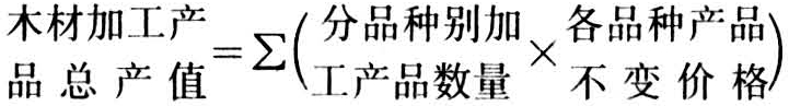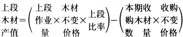 视企业的木材采伐运输生产过程是否完整,分别采用不同的方法。对具备完整生产过程的企业,按报告期内运抵最终贮木场(包括途中拨交)及企业自用材(不包括生产过程中用材)全部木材产量和分材种别的木材不变价格计算,即木材总产值等于报告期分材种别的木材产量与各材种木材价乘积之和。按现行制度规定,对有木材收购的企业,还应从木材总产值中扣除收购部分的产值。