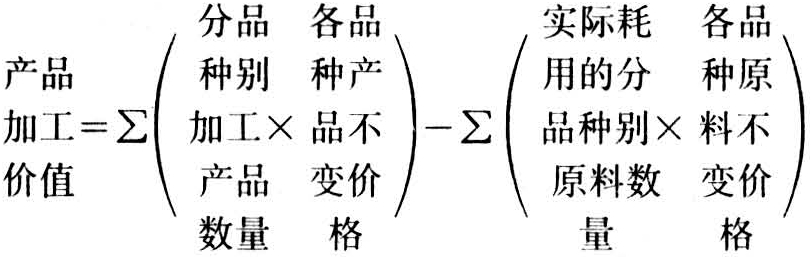 ②木材采运企业附属木材加工厂(或车间),用本企业生产的木材加工的产品,只计其加工价值;用外购木材或定货者原料加工的产品,按全价计算。加工价值的计算方法有两种:一种是将报告期生产的各种产品数量,分别乘以各自的不变加工费,然后加总;另一种是从产品价值中扣除实际耗用的原料价值,即