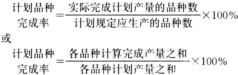产品品种,是同一种类工业产品中在具体性能和用途上有较大差别的部分。根据生产性质,森林工业产品可以分为木材采运工业产品、木材工业产品、林产化学工业产品和林业机械制造工业产品四大类。每一大类产品根据其使用价值、物理性能和化学性能的不同又可分为若干种类,如木材采运工业产品,可分为直接用原木、加工用原木和特级原木;木材工业产品可分为锯材、胶合板、纤维板、刨花板、木制品等。一般来说,同一种类产品的经济用途基本相同,但在具体性能和用途上往往还有一定程度的差别。这种差别较大时,形成不同的品种,差别较小时,形成不同的规格、型号或花色。如直接用原木按其用途的不同可分为坑木、桩木、电柱、檩材等材种(品种);锯材可分为针叶树锯材、阔叶树锯材、枕木、铁路货车锯材、载重汽车锯材、罐道木、机台木等品种。森林工业产品的种类、品种、规格的划分是相对的,随着人们需要的变化和生产的发展而变化。一个企业生产产品品种的多少,反映着生产技术水平、林木资源利用程度和满足社会需要程度。产品品种指标有品种数、品种产量和计划品种完成率。计划品种完成率的计算方法如下: