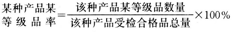 某等级产品数量占合格品总量的百分比。在森林工业企业中常用的指标有:锯材一等品率,胶合板、纤维板、刨花板一、二等品率,栲胶一、二等品率,松香优级品率等。其计算的一般公式如下: