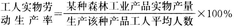②按森林工业企业生产工人生产的实物量计算的劳动生产率,称为生产工人实物劳动生产率。森林工业中通常计算的有木材、锯材、胶合板、纤维板、刨花板、松香、栲胶、纸与纸板等工人实物劳动生产率,用来反映森林工业企业生产工人的劳动效率。