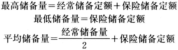 经常储备定额和保险储备定额确定后,即可求出某种物资的最高储备量、最低储备量和平均储备量。即