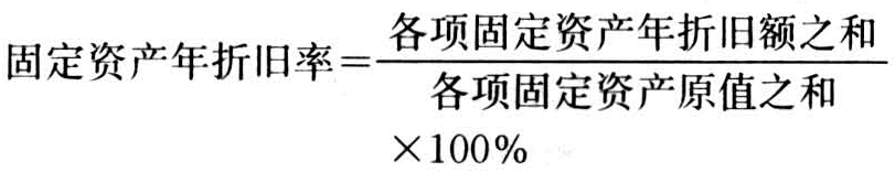 为简化手续,大中型企业均按全部固定资产类别确定一个综合折旧率来计算。年综合折旧率,是指各项固定资产折旧额之和占各项固定资产原值之和的比率,它表明固定资产的损耗程度,其计算公式如下: