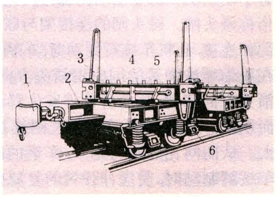 车辆行走、减震和转向的组合体。平板车转向架与宽轨车辆的转向架相似。20吨台车转向架(图1)是车架、弹簧和走行部分连接在一起的组件,是台车的主要组成部分,上面设有心盘与转向梁铰接,两端安装联结装置,车架中间安装制动装置。
