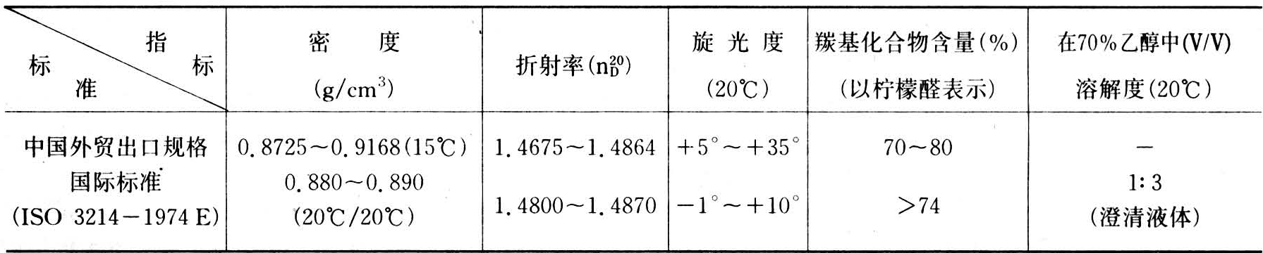 山苍子精油的质量指标如下表: