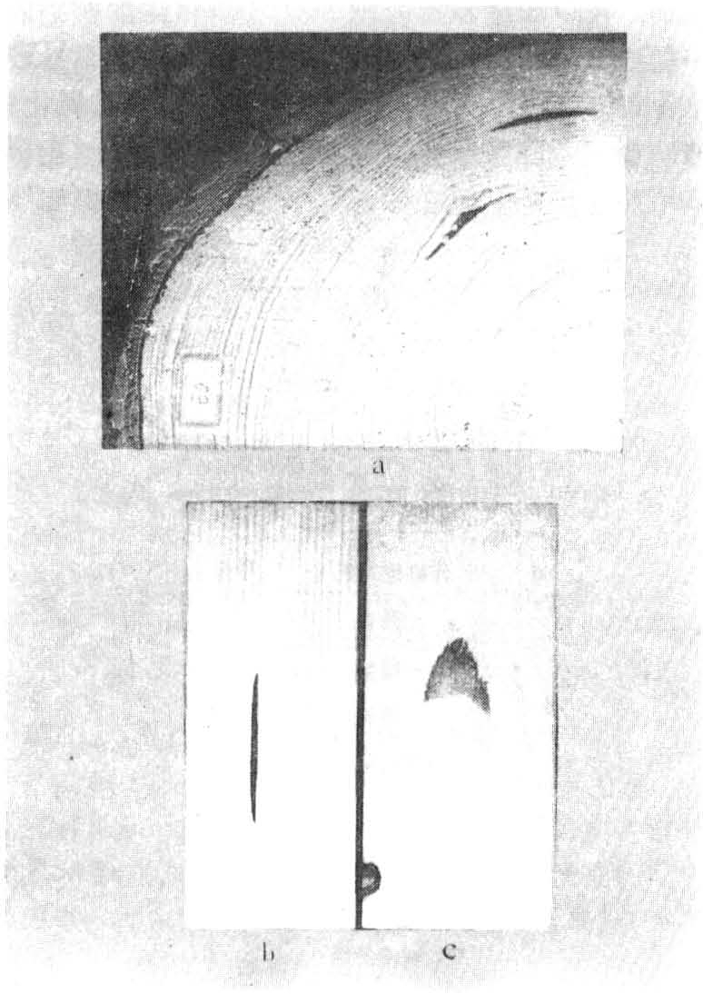 具有树脂道的针叶树材,其形成层受到损伤而导致树脂聚集在生长轮之间,形成的一种面向髓心的半凸镜状腔槽。俗称油眼。在木材横切面上树脂囊呈短环形裂纹(图a),径切面则表现为顺木纹的缝隙,而在弦切面上表现为与木纹平行的卵圆或椭圆形斑块(图b、c)。当树脂大量聚集并渗透其周围的木质部从而形成颜色较正常材深的部分,称为树脂漏。通常较小的树脂囊并不影响木材的强度,树脂漏则使木材密度增高,冲击韧性、抗弯和抗压强度略降低,还会影响木材的油漆和胶粘效果,或因树脂流出而污染制品或构件的表面。树脂囊通常包含有液态或固态的树脂,也可能无内含物。树脂囊的大小变化很大,径向直径一般小于1.3厘米,沿木材生长层可延伸至十余厘米,顺纹理也可以很长。从显微镜观察,在树脂囊沟槽的表面覆盖着类似树脂道的分泌薄壁组织。是否形成层分泌薄壁组织,是由于天然作用在短时期中产生分泌细胞层而不分生管胞;或是由于风的作用引起形成层和分泌细胞层的破坏,而形成破坏的表面,至今尚无定论。(李源哲)