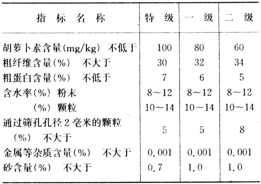包括原料采集、脱叶、切碎、烘干、粉碎、包装、贮存等工序。机械采集的原料要求鲜针叶不低于60%,木质化枝条不超过30%,有机杂质(阔叶等)不超过10%,无机杂质不超过0.2%。枝杈脱叶采用脱叶机,要求脱叶程度达90%左右。嫩枝叶切碎长度为30~40毫米,物料松软,利于烘干。干燥设备可采用振动式干燥机或气流干燥装置。干嫩枝叶,用锤式粉碎机破碎,粒度最好控制在1.2毫米以下,松针粉用黑色或有色塑料袋包装,外套编织袋,贮藏在避光、通风、干燥、清洁的仓库内,避免粉中叶绿素和胡萝卜素的损失。
