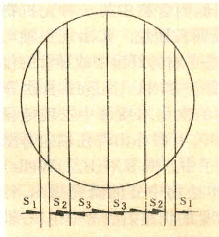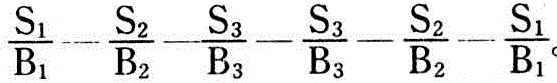 毛板下锯图表示法①板材厚度、锯口位置表示法。图1可表示为S1—S2—S3—S3—S2—S1。数字式表示板材的厚度和在这根原木小头端面上的位置。②板材厚度和块数表示法。图1也可表示为:—
