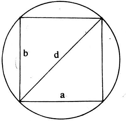 若将原木分为圆柱形和削度两个部分,原木的主产主要出自原木的圆柱形部分。原木主产出材率主要决定于原木小头断面的内接四边形大小,而内接四边形又以正方形面积最大(图4)。根据勾股定理,d2=a2+b2。这里,d为原木直径;a为最大方材宽;b为最大方材厚。当a=b时,a=0.707d。因此,原木锯解时,其无钝棱最大方材的每边与原木直径之比为0.707。原木形态对出材率有明显的影响,其影响之大小,首先是原木长度,它与出材率成反比;其次是原木径级,它与出材率成正比。原木断面形状可归纳为圆形、椭圆形、蛋圆形、三角形、四边形和五边形6种。因此在原木检尺方法固定情况下,即使检尺径相同的两根原木,因断面形状不同,出材率也有差异,断面形状呈椭圆形的原木出材率最大,内接最大四边形面积大于同一检尺径为圆形的内接最大四边形面积,其他几种断面形状的内接最大四边形面积,都小于圆形内接最大四边形的面积。