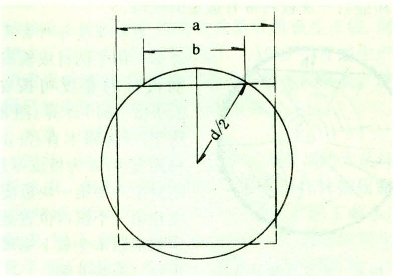式中 a为方材长边;b为着锯面宽;k为钝棱限度;d为原木直径;c为常数。一等材c值为0.80,二等材c值为0.98。