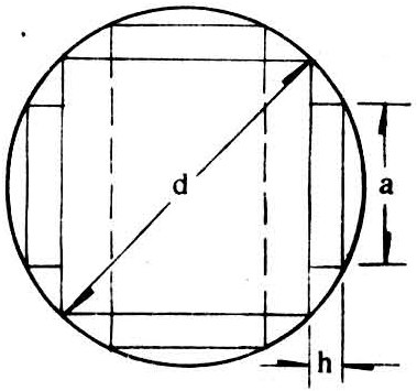 式中 d为原木直径;a为方材宽度;h为方材厚度。