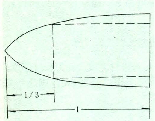 对带有抛物线顶点的毛边板截头裁边时,截去抛物线高度的1/3后,再进行裁边,求得的内接矩形面积为最大(图10)。梯形毛边板根据梯形板面两端头材宽比值的大小决定截断与否:当梯形毛边板小头材宽等于或小于大头材宽的0.577时,则应截断后裁边;否则可以不截断裁边。