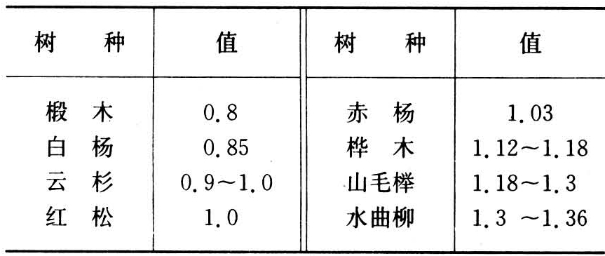 20世纪50年代中国总结出带锯“腰软”即适张度矢高,其经验式为: 压锯 式中 f为适张度矢高(毫米);B为带锯宽度(毫米);S为带锯厚度(毫米);65·10-4为经验系数;K为因素调整系数(a、b、c、d)(表1)。带锯“背松”程度称锯背挠度,用斜率表示,在1∶1000~1800之间变化,挠度大小与带锯宽度成反б