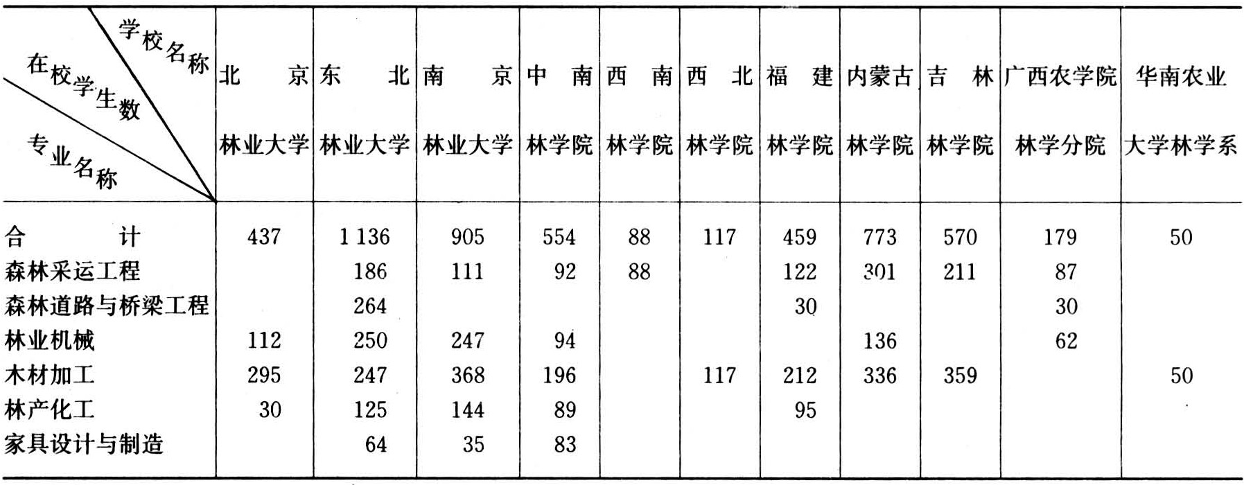 中国高等学校森林工业类专业本、专科基本情况表