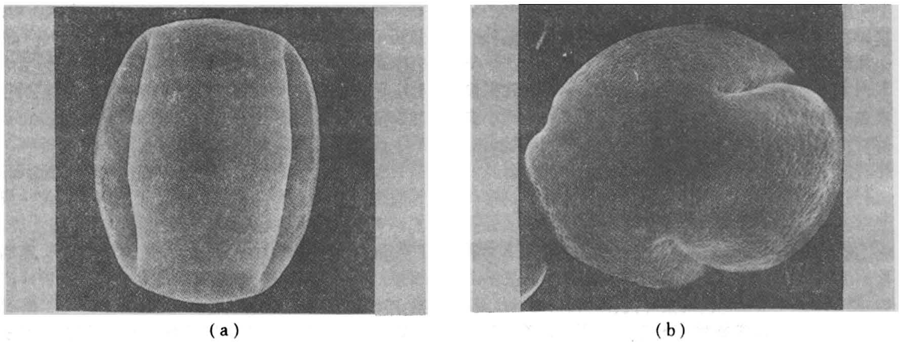 蜂蜜中刺槐花粉粒数为35365个/克,占蜜中花粉总数的76.2%。刺槐花粉乳白色。花粉粒近球形,赤道面观为椭圆形,极面观为3裂圆形。大小为19.3(16.7~22.5)×24.4(18.1~30)微米。具3孔沟;沟较宽,沟膜不平。外壁表面具细网状雕纹,网孔圆形,大小约0.21微米,网脊由细颗粒组成。(见图)